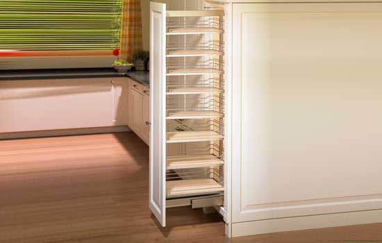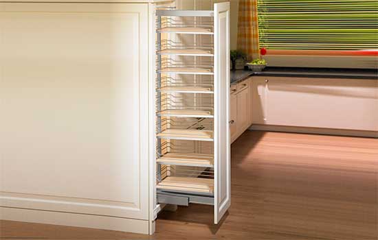 • Dispensa Pullout Frame Large w/ 17"W Trays Champagne Soft-close 62-7/8" to 78-3/4"H